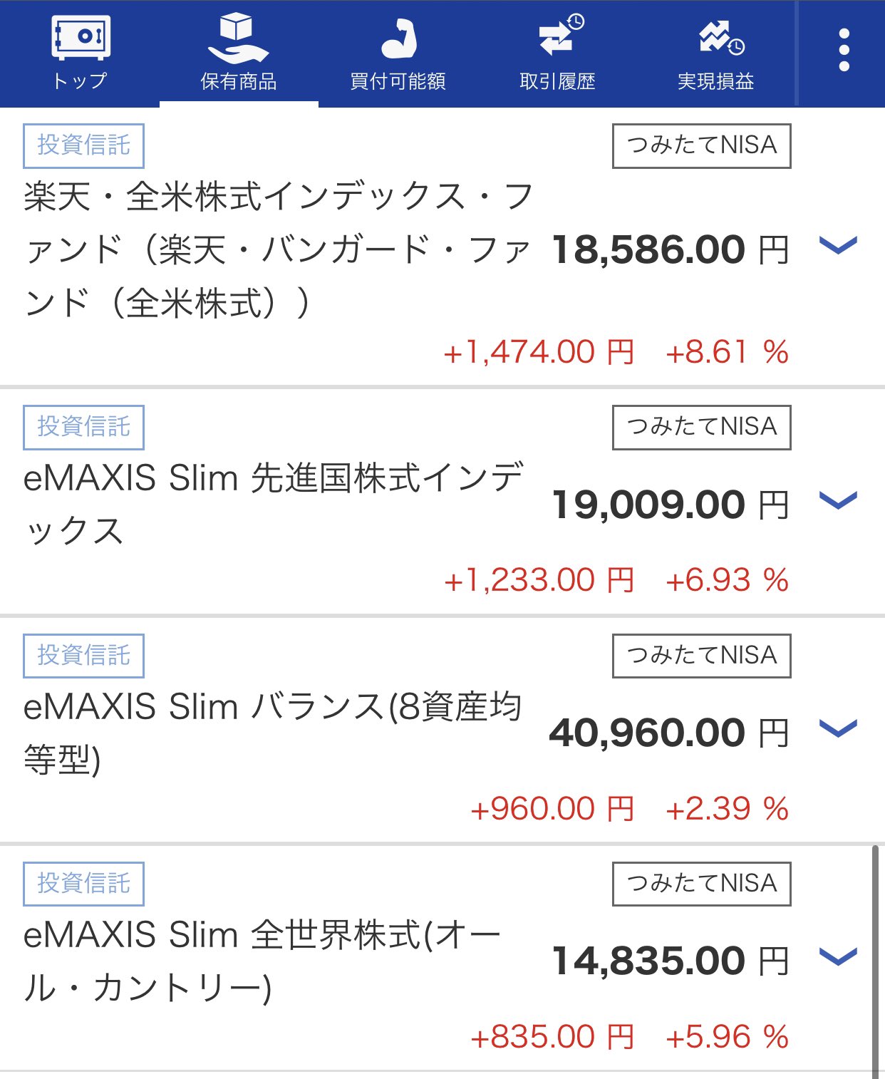 Olのん 資産形成 ゆるキャリ A Twitter 今年4月から楽天証券でつみたてnisaを開始しました よろしくお願いします 楽天 全米株式インデックス ファンド Emaxis Slimシリーズ 先進国株式インデックス バランス 8資産均等型 全世界株式 オール