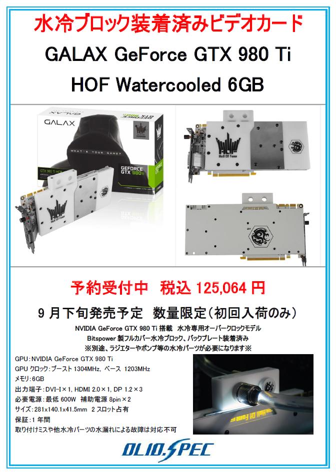 オリオスペック プロ生ちゃんクリアファイル配布中 A Twitter 新製品 Gtx980ti搭載水冷専用ビデオカード Galax Gf Pgtx980ti 6gd5 Hof Wc 税込125 064円 水冷ブロック装着済みのオーバークロック版vga 初回入荷のみの数量限定販売ですのでお早めに Http T Co
