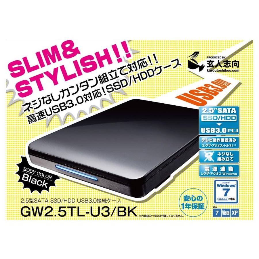 玄人志向 Gw2 5tl U3 Bk Usb3 0接続 2 5型 Sata Ssd Hddケース ブラック