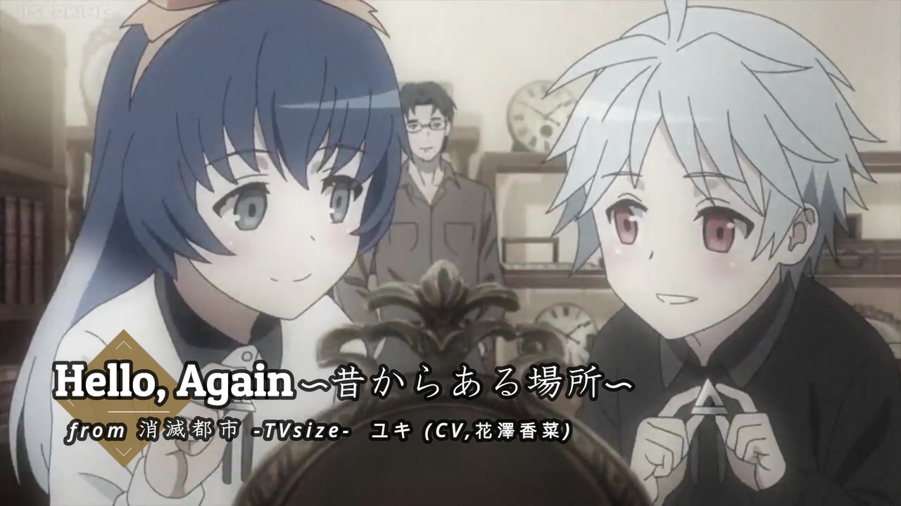 O Xrhsths やんちゃん Sto Twitter Hanazawa Staff うわ 消滅都市のエンディング 大好きな Hello Again 昔からある場所 になってる しかも大好きな花澤香菜ちゃんが歌ってるし すごい嬉しいです 消滅都市