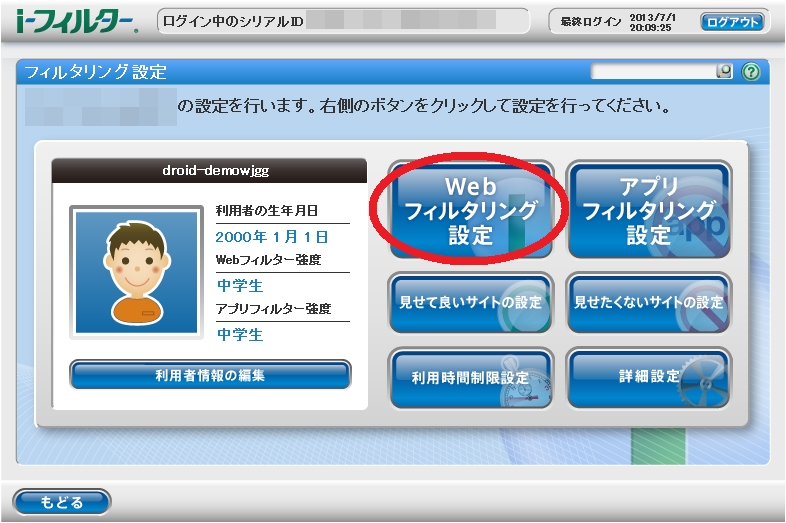 I フィルター For Android アプリフィルタリング設定を変更する方法を教えて下さい サポート