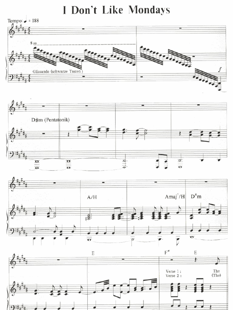 I Don T Like Mondays The Boomtown Rats Bob Geldof Klavier Gesang Gitarre Musiknoten Notenblatter