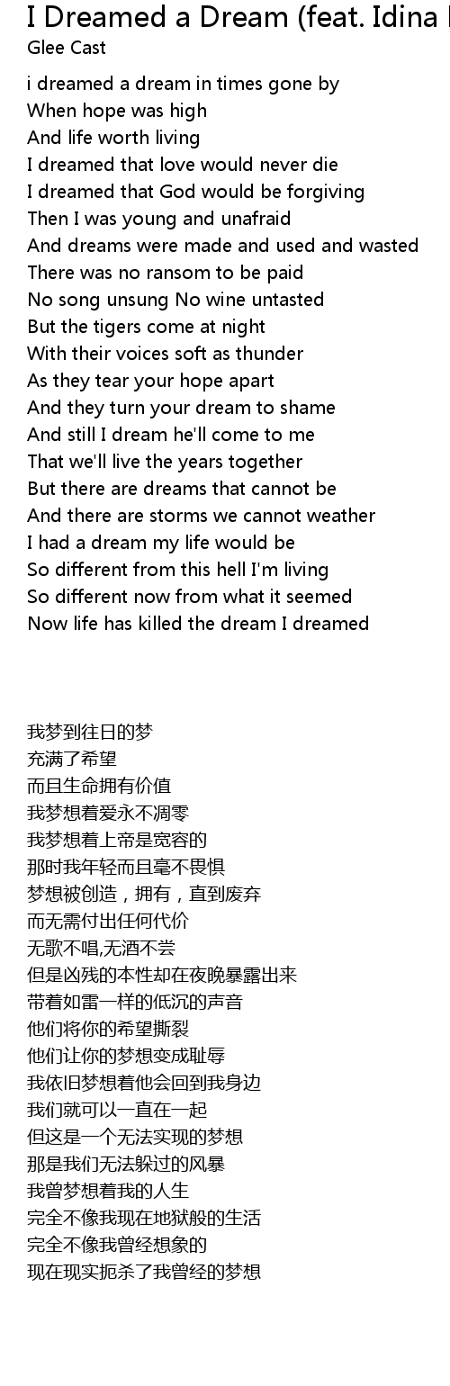 I Dreamed A Dream Feat Idina Menzel Lea Michele Lyrics Follow Lyrics