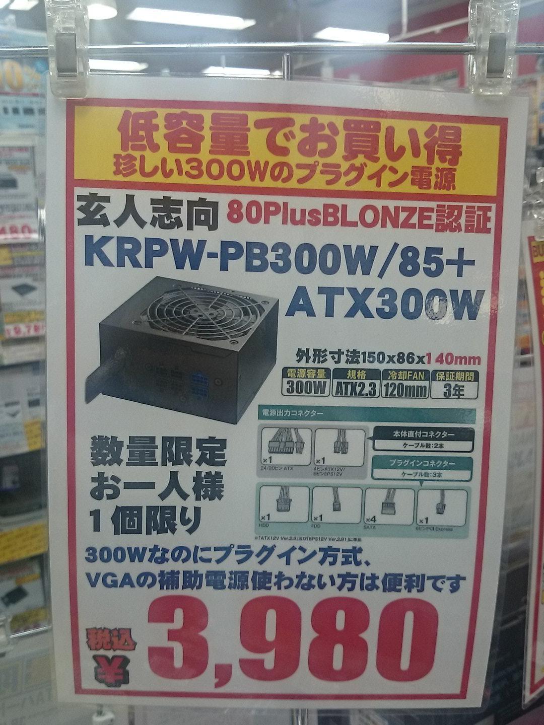 Pc Diy Shop Freet On Twitter 意外に少ない特価 玄人志向 Krpw Pb300w 85 3 980 税込 奥行き140mmの300wプラグイン電源の80plus銅 低容量での特価電源では結構いい感じのスペックです Miniitx環境とかにオススメ Http T Co Mscwztgunf