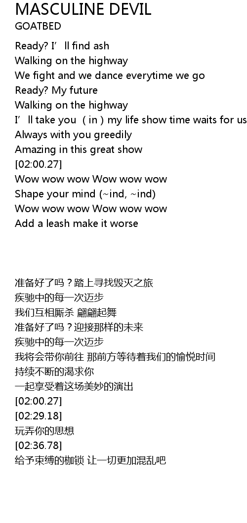 Masculine Devil 歌词 歌词网
